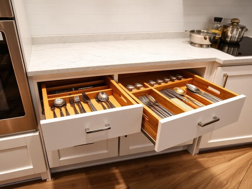 Våra lådor och skåp tillverkas med samma precision som resten av köket. Med genomtänkta förvaringslösningar och premium beslag skapar vi funktion och skönhet.