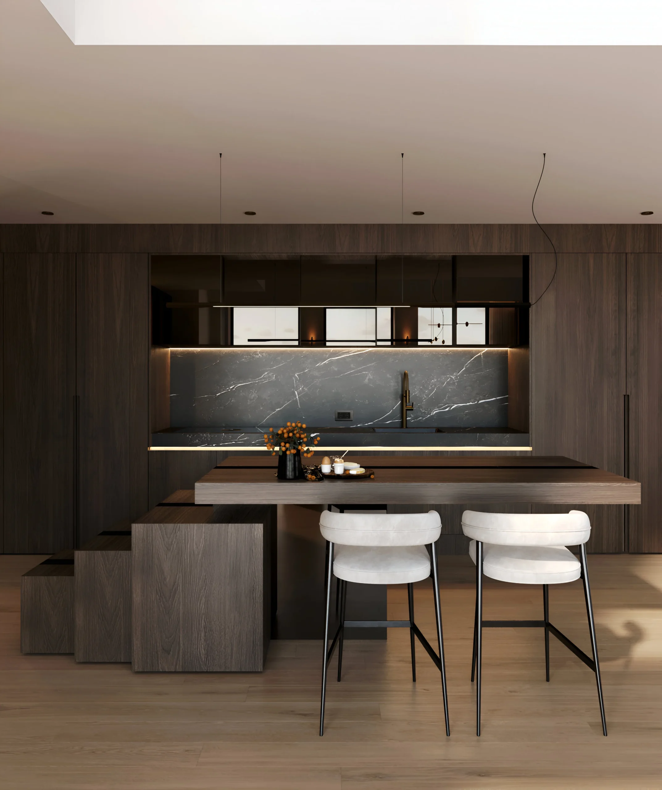 Träkök kräver minimal skötsel. Vi rekommenderar att du torkar av ytorna med en fuktig trasa och undviker stående vatten. Beroende på ytbehandling kan du behöva olja om bänkskivor några gånger per år för att behålla träets naturliga skönhet.