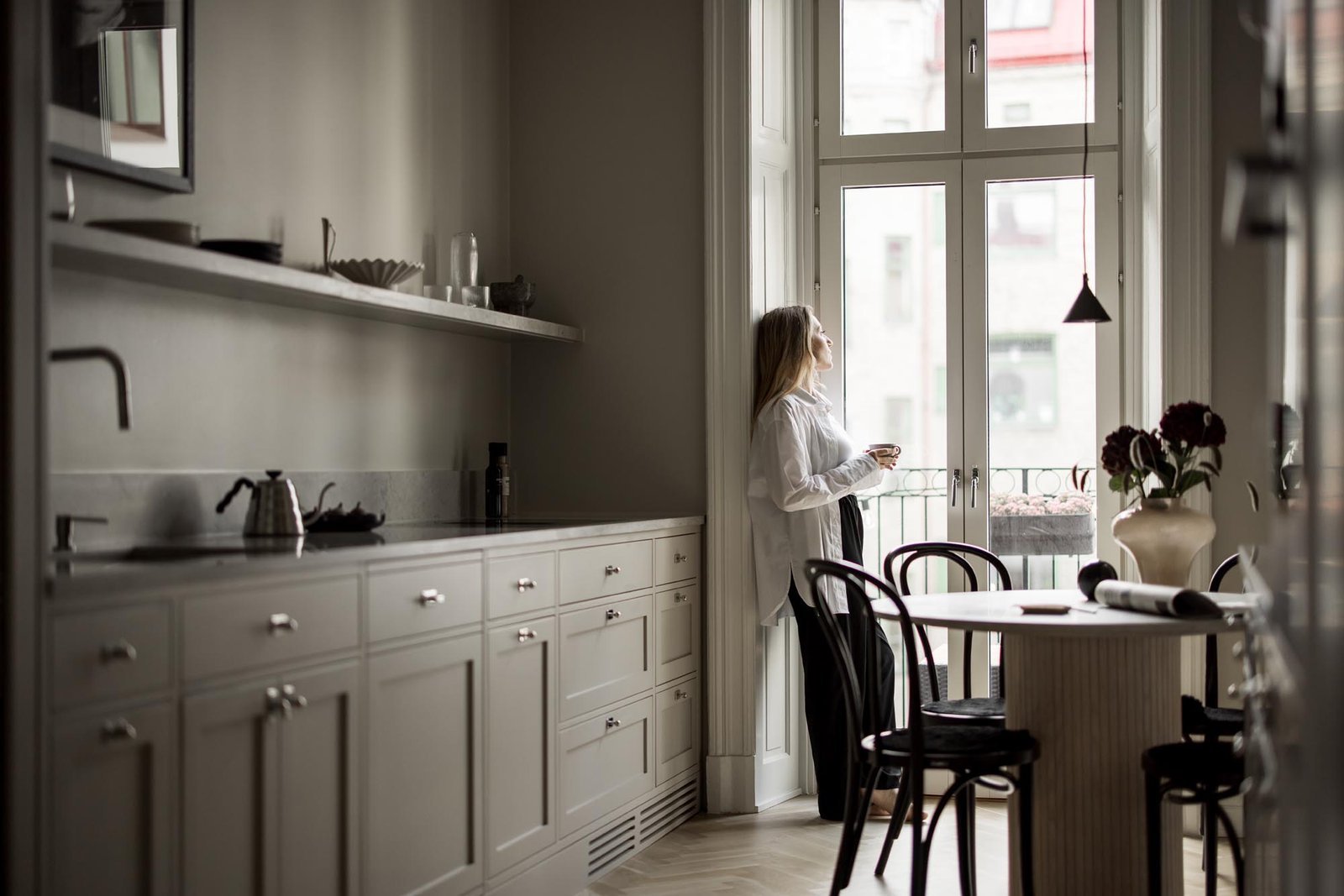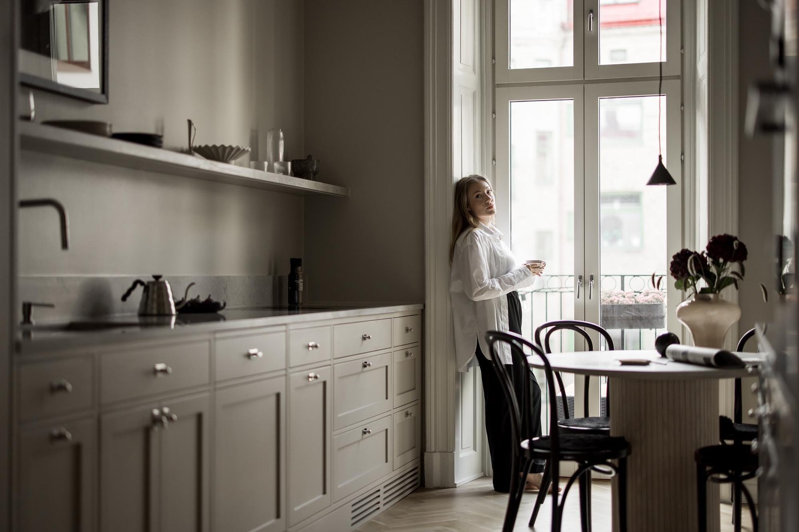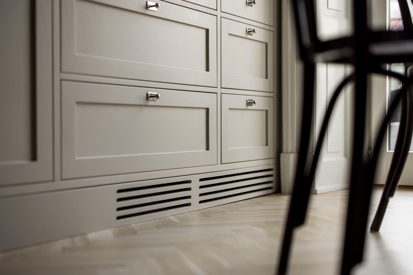 Kunden älskade den klassiska shakerstilen men ville undvika det alltför traditionella uttrycket som ibland kan kännas tungt och mörkt. Utmaningen var att skapa ett shakerkök som kändes fräscht och ljust, samtidigt som det behöll de klassiska proportionerna och detaljerna som gör stilen så tidlös.