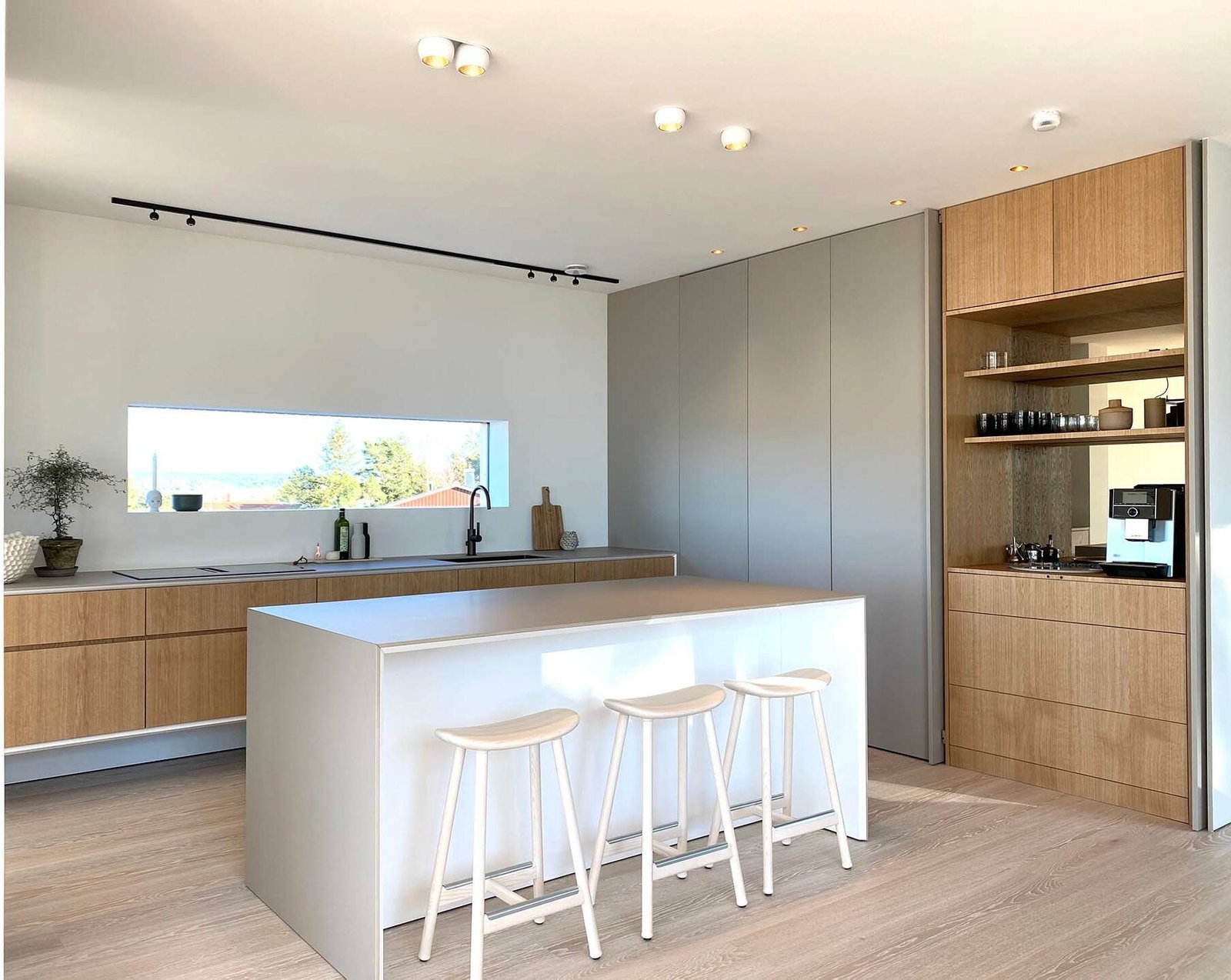 Villa Fernströms minimalistiska kök med öppna ytor och en massa lösningar som är dolda för ögat, men som gör detta kök till ett drömkök.
